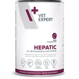 VetExpert VD 4T Hepatic Dog konzerva je kompletní dietní krmivo pro psy, které podporuje funkci jater při chronické jaterní nedostatečnosti.