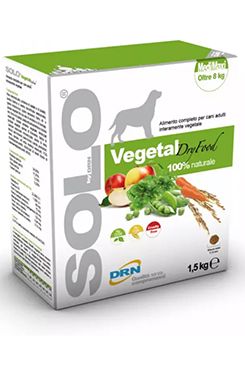 Kompletní krmivo pro dospělé psy, výhradně rostlinného původu.Obsahuje pouze rostlinné zdroje bílkovin a sacharidy s vysokou biologickou hodnotou. Díky nutričnímu složení se Solo® Vegetal Dry Food doporučuje pro:dospělé psymalé dospělé psy (do 7 kg)staré psypsi, kterým nelze podávat živočišné bílkovinyMůže být také upraveno pro staré psy se špatnou kvalitou srsti. Solo® Vegetal Dry Food:neobsahuje OGMneobsahuje kukuřici a sójuneobsahuje přísady a konzervační látky Složení:Mikronizovaná rýže; bramborový a hrachový protein 0,6 %; vybraný bílý oves a loupaný oves 6,8 %; pšenice jednozrnná; pohanka; špalda; rostlinné oleje a tuky (včetně oleje z pupalky dvouleté a brutnáku lékařského); bramborové vločky; sušená dužina z červené řepy a čekanky; izolát rostlinných bílkovin; hydrolyzáty rostlinných bílkovin; pšeničné klíčky; mikronizovaná sušená mouka z karobu; sušené pivovarské kvasnice; minerální soli; lněné semínko; sušená mrkev 0,2 %, rajčata, jablka 0,2 %, špenát 0,2 % a vojtěška; FOS (fruktooligosacharidy); kvasničné hydrolyzáty (zdroj mannan-oligosacharidů, MOS). Doporučené dávkování: Váha psaDenní dávka aktivních psůDenní dávka při onemocnění psa2 kg70 g50 g4 kg100 g80 g6 kg140 g120 g8 kg180 g140 g10 kg200 g150 g15 kg230 g190 g20 kg270 g230 g30 kg500 g450 g40 kg600 g500 g