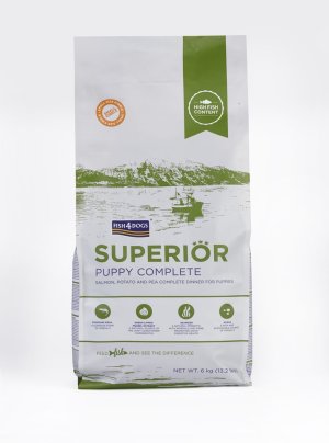 Granule Superior pro dospělé psy s příchutí lososa, brambor a hrášku.