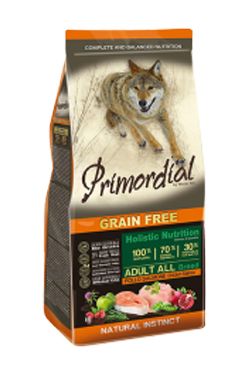 Primordial kuře a losos je kompletní bezobilné vysoce stravitelné krmivo bohaté na proteiny vysoké biologické hodnoty a obsahuje vhodnou kompozici aminokyselin.
