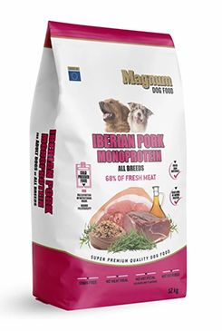 Krmivo Magnum Iberian Pork for All Breeds je vyrobeno bez masových mouček pouze z čerstvého Iberského vepřového masa, bez lepku a bez přidaných tuků.