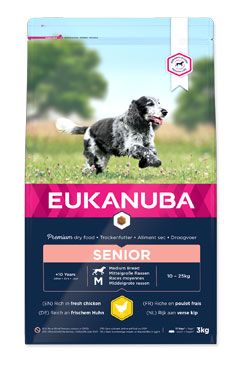 Nová EUKANUBA vylepšená receptura se zaměřením na konkrétní fázi života - pro psí seniory středně velkých plemen nad 10 let – poskytuje na míru upravenou výživu pro zdravé stárnutí a podporu optimálního tělesného stavu vašeho psího seniora.