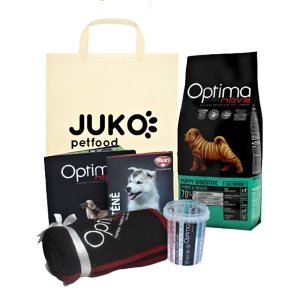 Superpremiové krmivo pro psy s masovou náplní. Kompletní krmivo pro štěňata všech plemen.Čerstvé kuřecí maso, jehněčí, tuňák a jogurt SLOŽENÍ:Kuře 59% (čerstvé kuře 38%, dehydrované kuře 14%, kuřecí moučka 7%), hrách, domácí ovoce (čerstvé, sušené, ovocný extrakt) – jablka, hrušky, švestky, brusinky, borůvky, drůbeží tuk, jehněčí moučka 11%, vařená rýže, sušené řepné řízky, tuňáková moučka 10%, hydrolyzovaná drůbeží játra, bramborové vločky, domácí zelenina (čerstvá, sušená, extrakt) – mrkev, rajčata, zelený hrášek, zelený špenát, sušené pivovarské kvasnice, lněné semeno, slunečnicový olej, celá vejce, sušený jogurt, sušené bylinné výtažky (rozmarýn, měsíček lékařský, bazalka) zelený čaj, výtažky z meruněk, Yucca shidigera 125mg/ kg, chondroitin, glukosamin.ANALYTICKÉ SLOŽKY:Protein 30 %, Tuk 20 %, Vláknina 3,5 %, Popel 7,6 %, Vápník 1,2 %, Fosfor 1,0 %, Vlhkost 10 %.NUTRIČNÍ DOPLŇKOVÉ LÁTKY:Vitamíny: Vit.