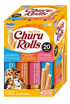 Poloměkké kuřecí tyčinky Churu Rolls jsou šťavnaté a extra lahodné masové pamlsky plněné masovým pyré s divokým mořským …