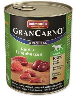 Animonda GranCarno Adultoptimálně vyvážené a chutné krmivo pro dospělého psa ve věku 1–6 letvyrobeno z čerstvého masa a vnitřností - s viditelnými masovými kouskyvynikající masová chuť - nefalšovaný požitekbez obilovin, bez lepku, bez sóji, bez cukrubez umělých barviv a konzervačních látekSložení: 52 % vepřového masa (srdce, játra, plíce, maso), 29 % vývar z lososa, 12 % losos, 4 % špenát, minerální látky, světlicový olejAnalytické složky: protein 10,5 %, obsah tuku 5 %, vláknina 0,4 %, popel 2,5 %, vlhkost 79 %Nutriční doplňkové látky (kg): 200 IU vitaminu D3, 1,4 mg monohydrát síranu manganatého, 25 mg síranu zinečnatého, monohydrátu, 0,5 mg síranu měďnatého(II) pentahydrátuHmotnost: 400 g