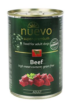 Konzerva Nuevo Hovězí je vhodná pro dospělé psy všech plemen, s obsahem hovězího masa.