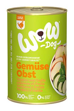 WOW Pure Zelenina a ovoce je přílohová směs zeleniny a ovoce s minerály určená jako doplňkové Vegan krmivo (doplněk stravy) pro všechny WOW konzervy, zejména k řadě WOW Pure z čistého masa, jako doplněk k čerstvému masu pro psy krmené barfem či k vařené stravě.