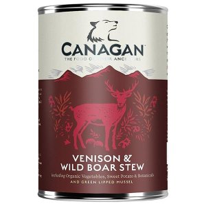Šťavnatá masová konzerva Canagan Venison & Wild Boar Stew.