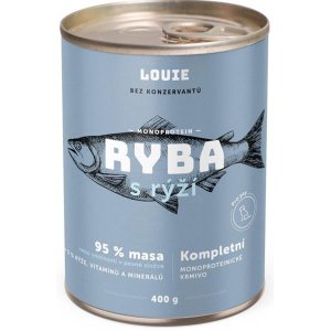 Šťavnaté kompletní krmivo v konzervě obsahuje 95 % mletých ryb v pevné složce.