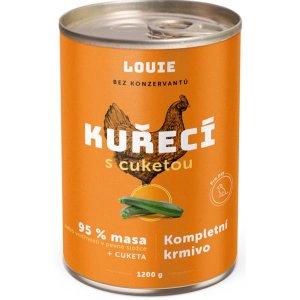 Šťavnaté kompletní krmivo v konzervě obsahuje 95 % mletého kuřecího masa v pevné složce.