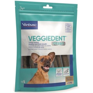 Funkční pamlsek pro psy ve tvaru tyčinky s oral care účinkem pečující o ústní dutinu s kuřecím a krůtím masem.