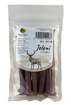 Doplňkové krmivo pro psy a kočky vyrobené ze 100% čerstvého masa, bez chemických konzervantů. Složení: Kachní maso 87%, rybí maso 4%, kukuřičný škrob 6%, glycerin 1%, maltitol ( přírodní sladidlo) 1,7%, ocet 0,3%Jakostní znaky: Hrubý protein (min) 40%, vlhkost (max) 23%, obsah tuku (min) 1%, hrubá vláknina (max) 1,5% Krmný návod: Podávejte jako příležitostný pamlsek.Zajistěte zvířeti přístup k čerstvé vodě.Skladujte při teplotě do 20 °C a relativní vlhkosti vzduchu do 60 %, zabraňte přímému slunečnímu světlu.