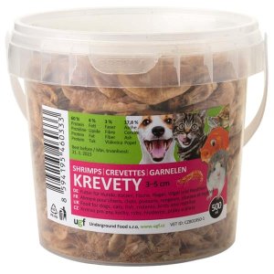 Sušené krevety o velikosti 3–5 cm jsou čistě přírodní doplňkové krmivo určené pro psy, kočky, plazy, ryby (zejména koi kapry), ptáky a …