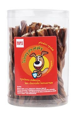 Pamlsek pro psa. 100% PŘÍRODNÍ PRODUKT BEZ KONZERVANTŮ, DOCHUCOVADEL A BARVIV.Díky vysoké výživové hodnotě jsou označovány za nejhodnotnější pochoutky pro psy. Jsou vhodné pro plemena psů střední a také pro velké psy.
