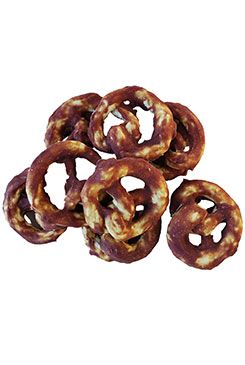 Masová pochoutka pro psy, preclík s kachním masem. Složení: kachna 40,8%, kůže 50,6%, škrob 2,6%, rostlinný protein 3,3%, glycerin 2,5%, sůl 0,2%Analytické složky: protein 60%, tuk 6%, popel 6%, vláknina 1%, vlhkost 18% Podávejte jako příležitostný pamlsek. Zajistěte zvířeti přístup k čerstvé vodě.