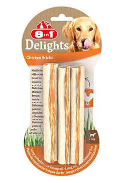 Žvýkací tyčinky s se sušeným kuřecím masem uvnitř.