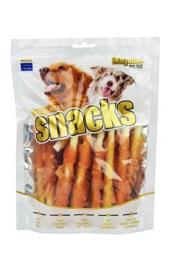 Přírodní masová pochoutka pro psy, tyčka z hovězí kůže obtočená plátkem lahodného kuřecího masa.Slouží jako odměna při hře, výcviku nebo jako doplněk stravy při cestách.