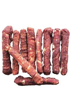 Masová pochoutka pro psy, rolka z buvolí kůže s kachním masem. Složení: kachní maso 20%, buvolí kůže 68%, škrob 12% Zajistěte zvířeti pitnou vodu.