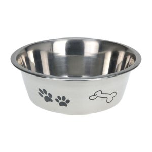 Protiskluzová miska z nerezové oceli pro psy. snadné čištěnípropracovaný design ve stylui "Bistro" na plastové krytině z vnější stranyprotiskluzová podložka s tvarem tlapky na spodní straně miskyObjem: 1200 mlRozměry: 178x178x71 mm