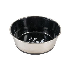 Praktická nerezová miska s gumovým okrajem, která zabrání skluzu po podlaze.