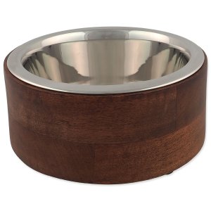 Krásný designový doplněk interiéru v podobě plastového stojánku, s nerezovou miskou, v imitaci přírodního dřeva - palisandr, velikost 1400ml.