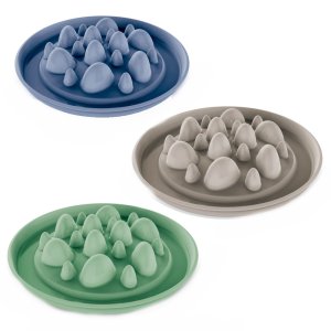 Silikonová zpomalovací vložka do misky, která umožňuje přeměnit běžnou misku zvířete na misku, která zpomaluje přijímání potravy.