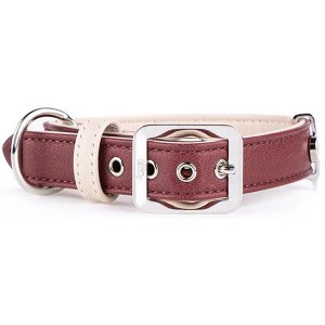 Obojek pro psy z kolekce Hermitage z pravé italské vínové/béžové kůže s bílou bronzovou povrchovou úpravou.