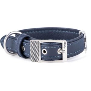 Obojek pro psy z kolekce Hermitage z pravé italské modrobéžové kůže s bílou bronzovou povrchovou úpravou.