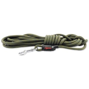 Tréninkové stopovací vodítko s pogumovanou vnější stranou zakončené klasickou kovovou karabinou.