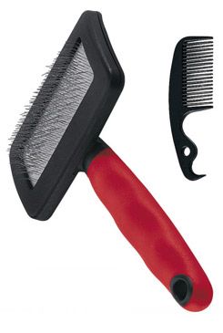 Oboustranný kartáč pro psy s dlouhou srstí.