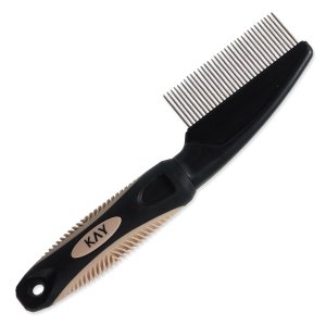Oboustranný hřeben na vyčesávání blech a drobných nečistot, vhodný pro všechna plemena.