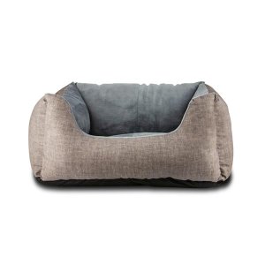 Látkový pelíšek pro psy s vyvýšeným polstrovaným okrajem.