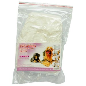 jednorázovéusnadní hygienu fenky při inkontinenci, v období hárání i po operacích, kdy se fenka nemůže venčit přirozeným způsobemvhodné i při dlouhém cestování, kdy není možné fenku vyvenčitdobře padnou díky elastickému proužku v pase a na noháchplena se připevní oboustrannými lepícími pásky a poté dobře drží na svém místěs otvorem na ocasvysoce absorpčnívždy je důležité správně zvolit velikost pleny podle velikosti psamateriál: netkaná textilie (polyester)velikost: S–Mobvod pasu: 28–40 cmbalení: 12 ks