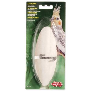 Sépiová kost s kovovým držátkem pro andulky a korely.