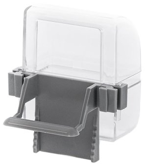 Plastové krmítko do ptačích klecí s otvory na krmítka.
