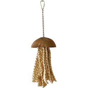 Hračka z přírodních materiálů zpříjemní a obohatí ptákům prostředí v kleci.