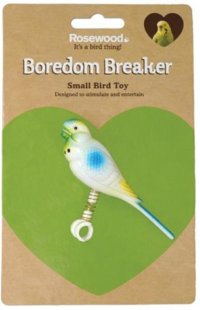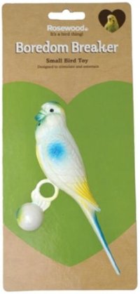 Plastová hračka pro ptáky, imitace andulky v životní velikosti.