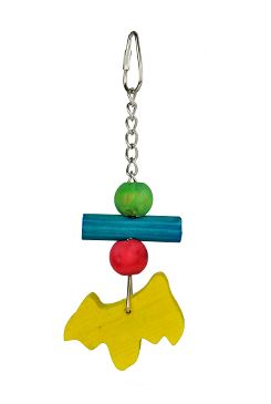 Dřevěná hračka z pevného a odolného materiálu, který vydrží i nápor papoušků se silnými zobáky.Vhodná pro velké druhy papoušků (např. ara, žako, alexandr velký).Dřevěné části jsou barveny zdravotně nezávadnými barvami. Velikost: 36 cm
