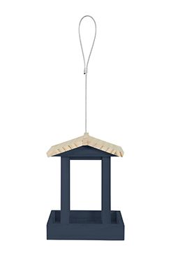 Závěsné krmítko na semena (650g) z certifikovaného borovicového dřeva a kovovým lankem pro větší odolnost.