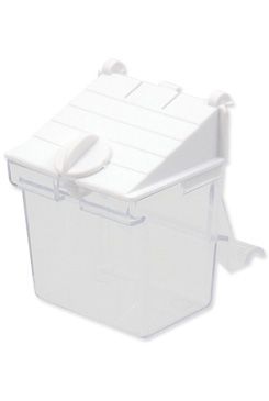 Plastové krmítko do klece pro ptáky - maléOtevřené plastové krmítko určené k upevnění na dráty klece umožňuje kontinuální doplňování krmiva bez nutnosti otvírání klece.