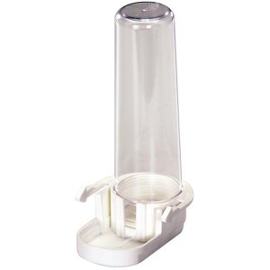 Plastová napáječka na vodu pro papoušky o objemu 100 ml.