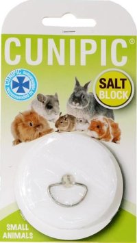 Čistá minerální sůl pro drobné savce ve tvaru kolečka opatřená držákem k jednoduchému zavěšení do klece.