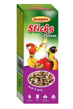 Doplňkové krmivo pro andulky, tyčinky - bylinky&paprika, sezam&banán, kiwi&citron. V ptačím obydlí by neměla tyčinka nikdy chybět.