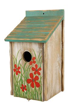 Venkovní hnízdící budkaVenkovní budka určena k hnízdění malých ptáků (Sýkora modřinka, babka, úhelníček), s bydlem.