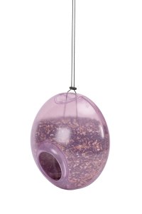 Moderní a elegantní krmítko kulatého tvaru pro venkovní ptactvo, které se dá prakticky zavěsit na každou větev.