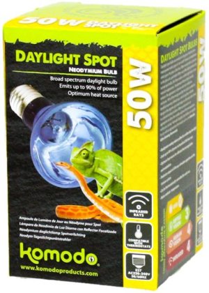 Komodo Neodymium Daylight Spot Bulb je terarijní žárovka s neodymem, vzácným kovem, který propůjčuje sklu namodralý odstín.