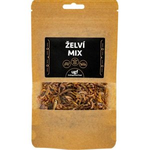 Želví mix je 100% přírodní krmivo pro vodní a suchozemské želvy, které obsahuje mix vodních živočichů a sušený hmyz pro pestrost a vyváženost jejich potravy.Obsahuje gammarus, bource morušvyového, moučného červa, krevety a rybičky.