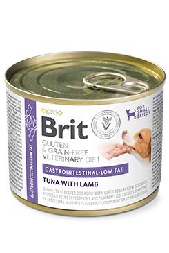 Brit Veterinární bezobilná dieta pro psy - Trávicí poruchy a sklony k obezitě, receptura Tuňák a JehněčíKompletní dietní krmivo pro psy - podpora při léčbě chronické gastroenteritidy.ZMÍRNĚNÍ TRÁVICÍCH POTÍŽÍ U GASTROENTERITIDZLEPŠENÍ KVALITY STOLICESTRAVITELNÝ DIETNÍ PROTEIN, VLÁKNINADIETA BEZ RIZIKA ALERGIE/INTOLERANCE NA LETEK A KUŘECÍ BÍLKOVINUBEZ LEPKUKompletní dietní krmivo pro psy s poruchou absorpce lipidů, s enteropatií se ztrátou proteinů a pankreatitidou – omezení střevních resorpčních onemocnění, kompenzace maldigesce.Vhodně jako podpora při řešení průjmů a zvracení, zklidnění trávicího traktu, při akutní a chronické pankreatitidě, zvýšené plynatosti. Zmírnění trávicích potíží u gastroenteritidZmírnění trávicích potíží u protein losing enteropatiíPodpora při léčbě epi s pankreatitidy psůLehce stravitelné bílkoviny s vysokou biologickou hodnotouDieta bez rizika alergie/intolerance na gluten a kuřecí bílkovinuNutriční podpora pacientů s poruchou trávení lipidůPodpora střevního mikrobiomu a imunitního systémuVyrobeno v České republice Složení:tuňák (40 %), jehněčí dršťky (20 %), pivovarské kvasnice (3 %), hrachová mouka (1,5 %), lignocelulóza (0,5 %), slupky a semena psyllia (0,5 %), sušené řasy (0,5 %, Ascophyllum nodosum), uhličitan vápenatý (0,4 %), ß-glukan-oligosacharidy 5 % (0,005 %), frukto-oligosacharidy (0,004 %), Mojave yucca (0,004 %), sušený rakytník (0,004 %). Analytické složky:hrubý protein 8,0 %, hrubý tuk 2,0 %, surový popel 3,0 %, vlhkost 78,0 %, hrubá vláknina 1,0 %, celkové cukry (jako NFE) 8,0 %, vápník 0,4 %, fosfor 0,3 %, sodík 0,3 %, hořčík 0,04 %, draslík 0,5 %, omega-3 mastné kyseliny 0,05 %, omega-6 mastné kyseliny 0,05 %.Nutriční doplňkové látky na 1 kg:vitamín D3 (3a671) 400 IU, vitamín E (3a700) 200 mg, vitamín B1 (3a821) 4,0 mg, biotin (3a880) 0,5 mg, zinek (3b612) 25 mg, železo (3b107) 10 mg, mangan (3b505) 3 mg, jodid draselný (3b201) 0,6 mg, měď (3b407) 2,4 mg, taurin (3a370) 1 000 mg, L-karnitin (3a910) 80 mg, taurin (3a370) 500 mg, glutamát sodný (2b621) 3 000 mg, L-arginin (3c364) 1 000 mg.Technologické doplňkové látky v 1 kg:klinoptilolit sedimentárního původu (1g568) 20 000 mg. Metabolizovatelná energie:775 kcal/kg. Krmná tabulka: