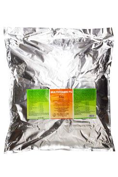 Vitamínový přípravek s obsahem v tuku rozpustných vitamínů A, D3, E upravených do vodorozpustné formy.