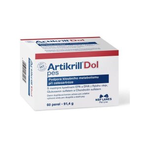 NBF Lanes Artikrill Dol je doplňkové krmivo ve formě kapslí určené pro dospělé a starší psy s osteoartrózou.